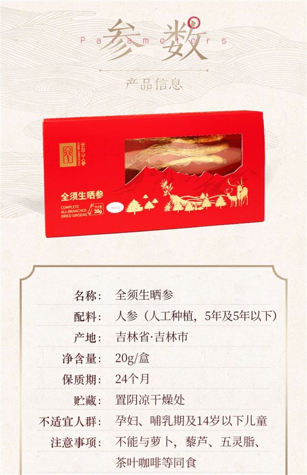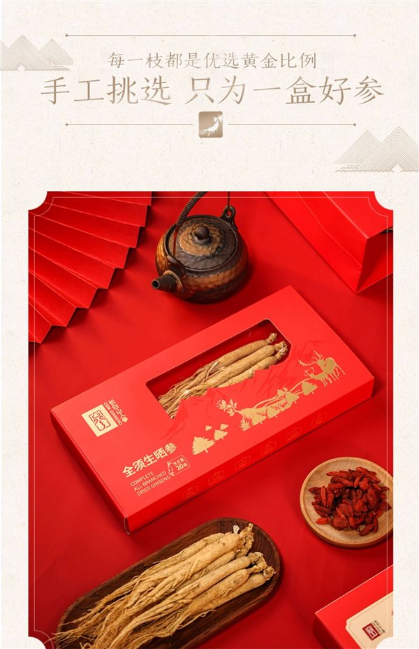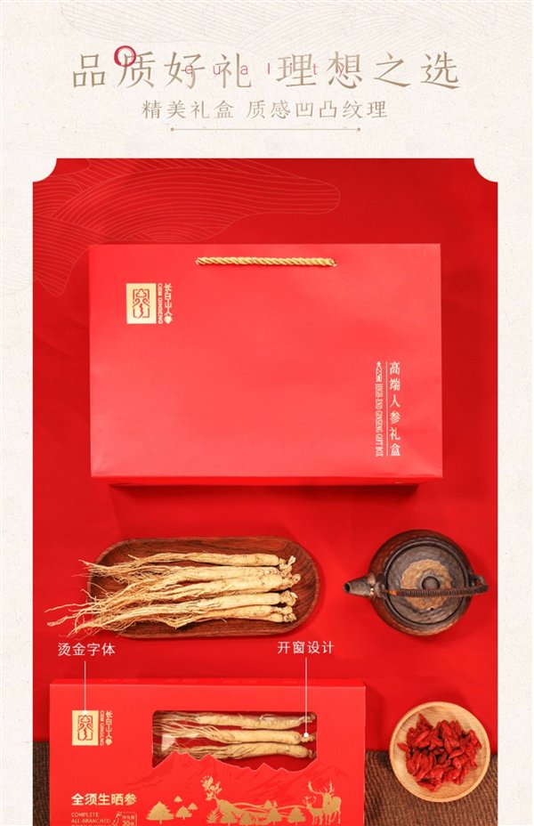 长白山人参!全须红参/生晒参久违探底:4盒99元赠2礼袋
